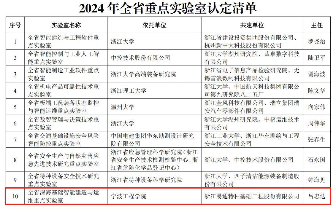 (Approval as the Zhejiang Provincial Key Laboratory of Deep-Sea Infrastructure Intelligent Construction,Operation and Maintenace)